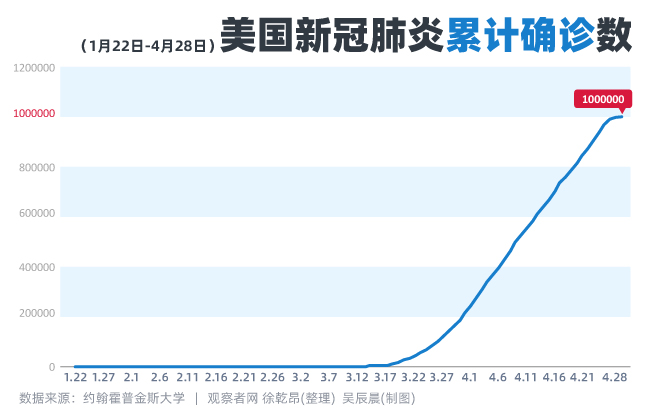 當地時(shí)間4月28日,美國新冠肺炎累計確診病例數突破100萬(wàn),占世界總病例數的三分之一,令全球任何一個(gè)國家都望塵莫及。